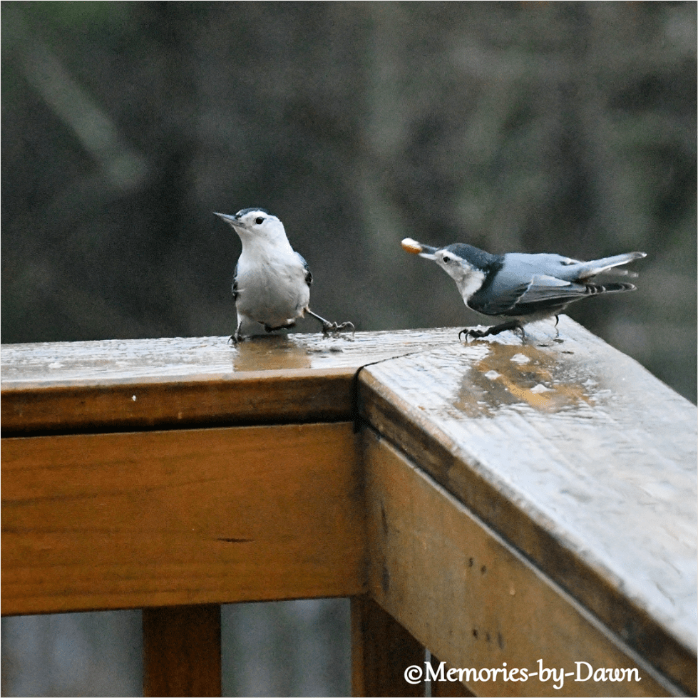 Jan 20 Look! The white-breasted nut hatch was excited to show off the nut he got from the feeder. She told him to move on! 20/365. Share this: Click to share on Pinterest (Opens in new window) Pinterest Click to share on Facebook (Opens in new window) Facebook Like Loading... Related