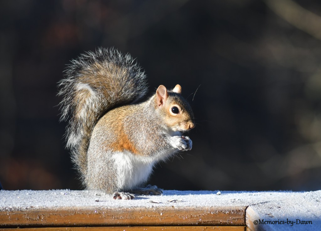 Jan 24 Frosty Morning There was quite a lot of frost this morning. This squirrel got up for an early breakfast. Of course the dogs were excited to see him, they wanted to chase him! 24/365. Share this: Click to share on Pinterest (Opens in new window) Pinterest Click to share on Facebook (Opens in new window) Facebook Like Loading... Related