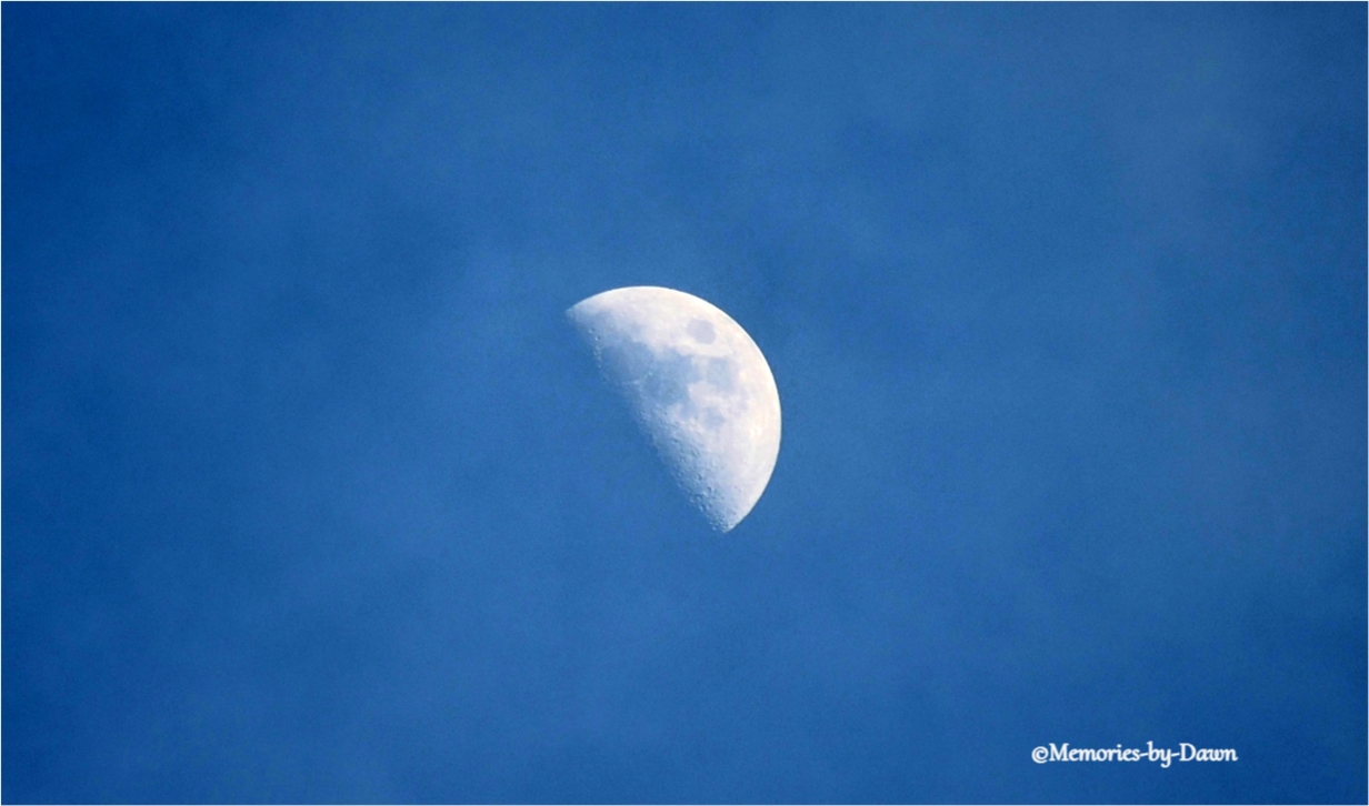 Jan 28 Half Moon Caught this half moon out this afternoon. I’m very pleased with this picture. I did crop it and adjust the color, but the surface is all mine! 28/365. Share this: Click to share on Pinterest (Opens in new window) Pinterest Click to share on Facebook (Opens in new window) Facebook Like Loading... Related