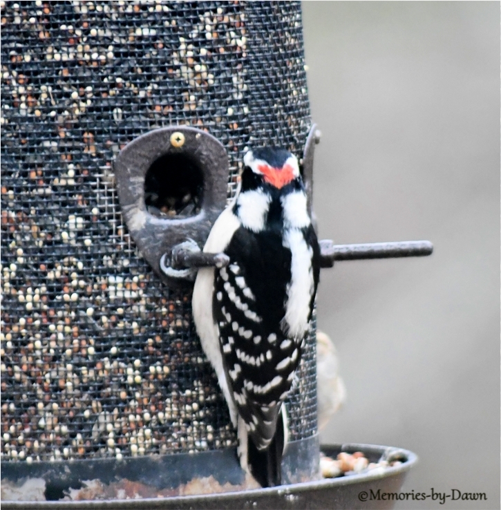 Jan 29 Mr Downy Woodpecker On this dreary day, Mr Downy Woodpecker stopped by the feeder for a bite to eat. I love how I was able to get a shot of the back of his head, I didn’t know their red feathers were in the shape of a heart! 29/365. Share this: Click to share on Pinterest (Opens in new window) Pinterest Click to share on Facebook (Opens in new window) Facebook Like Loading... Related