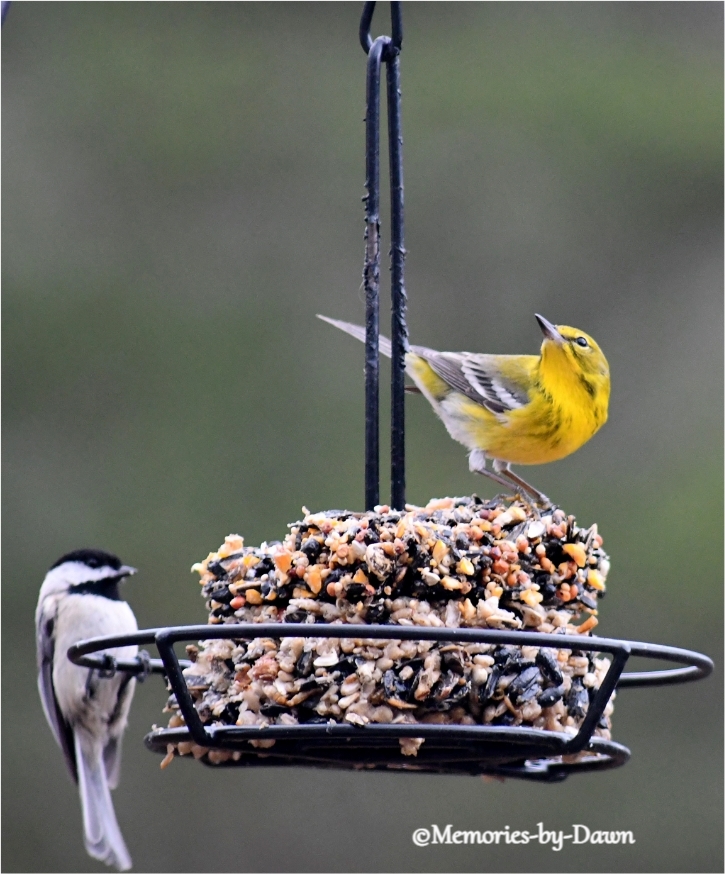 Feb 12 New Friends The Black-capped chickadees and the Pine warblers having been stopping by lately. The Chickadees don’t usually hang around long enough for a picture. The warbler hangs around a little more often. I love the color in the warbler. 43/365. Share this: Click to share on Pinterest (Opens in new window) Pinterest Click to share on Facebook (Opens in new window) Facebook Like Loading... Related