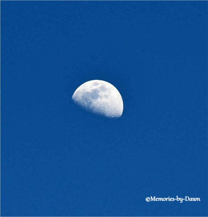 Mar 2 Another Moon I cropped and enhanced the blue sky. I like how you can see the details in the moon. In the right place at the right time! 61/365. Share this: Click to share on Pinterest (Opens in new window) Pinterest Click to share on Facebook (Opens in new window) Facebook Like Loading... Related