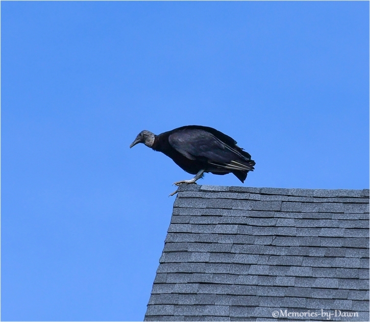 Apr 19 Looking for a bite to eat This black vulture landed on a neighbor’s roof. He just stood there for a bit, then started walking toward the edge. This is the picture right before he took off. 109/365 Share this: Click to share on Pinterest (Opens in new window) Pinterest Click to share on Facebook (Opens in new window) Facebook Like Loading... Related