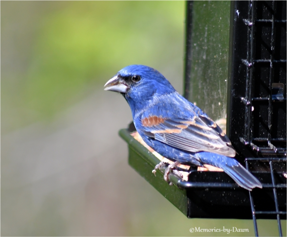 Apr 21 Blue Grosbeak This breeding male is here now visiting our feeder. I love his coloring. 111/365. Share this: Click to share on Pinterest (Opens in new window) Pinterest Click to share on Facebook (Opens in new window) Facebook Like Loading... Related