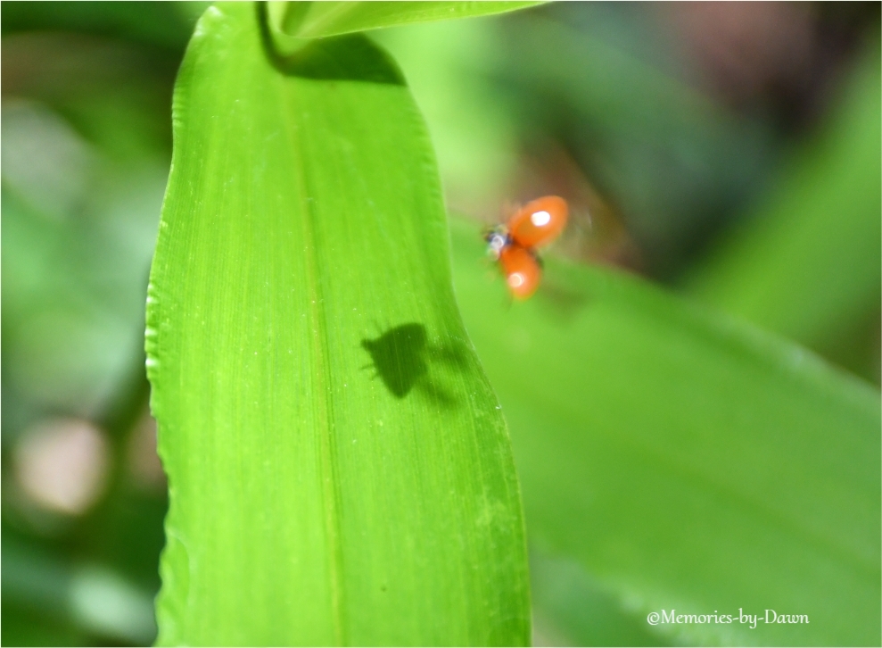 May 16 Shadow This little lady bug was crawling on this leaf and I was taking pictures. All of the sudden she flew up and I didn’t have time to focus on her. 136/365. Share this: Click to share on Pinterest (Opens in new window) Pinterest Click to share on Facebook (Opens in new window) Facebook Like Loading... Related