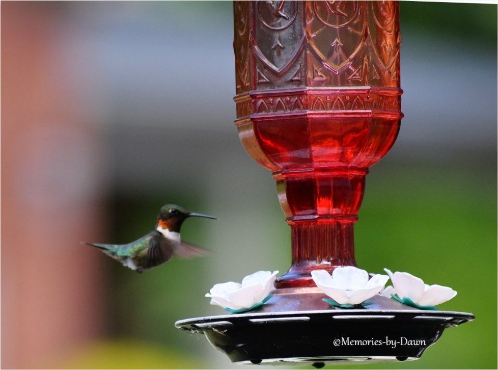 Jun 2 Hummingbird Our first hummingbird of the year has arrived! I’ve named him Rufus, not sure why it just sorta came to mind when I saw him. My Grandfather’s name was Rufus. 153/365. Share this: Click to share on Pinterest (Opens in new window) Pinterest Click to share on Facebook (Opens in new window) Facebook Like Loading... Related