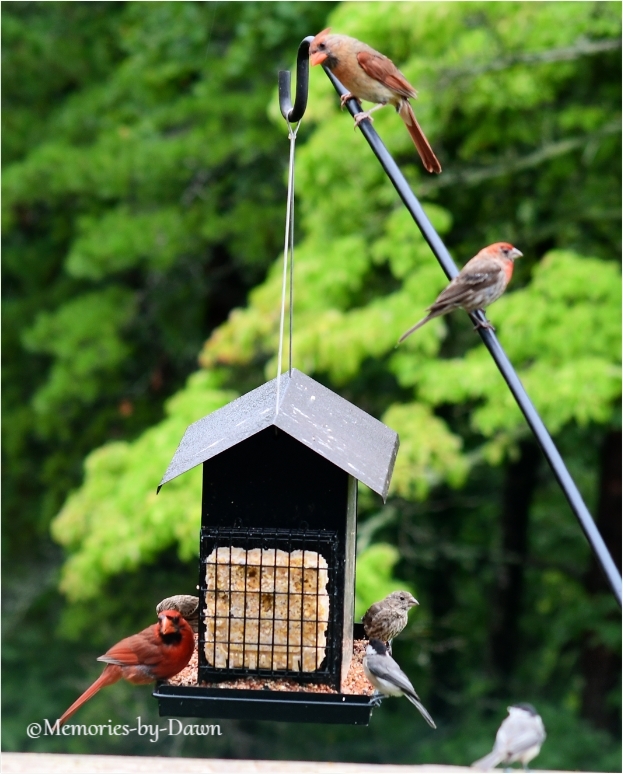 Aug 6 Dinner Time! They were all watching the feeders getting filled. They watch from the trees and come swooping in for dinner when we go in the house. 218/365. Share this: Click to share on Pinterest (Opens in new window) Pinterest Click to share on Facebook (Opens in new window) Facebook Like Loading... Related