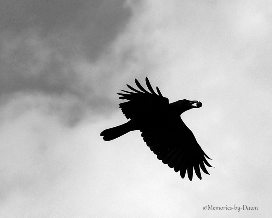 This picture was a “lucky” shot. I saw the crows fly behind the house. The first couple flew back to the front and I was ready! LOL!! Didn’t realize he had something in his beak until I downloaded the picture. I changed it to black and white because the crow itself didn’t have any definition. Wish I knew what he had in his beak though. 253/365.