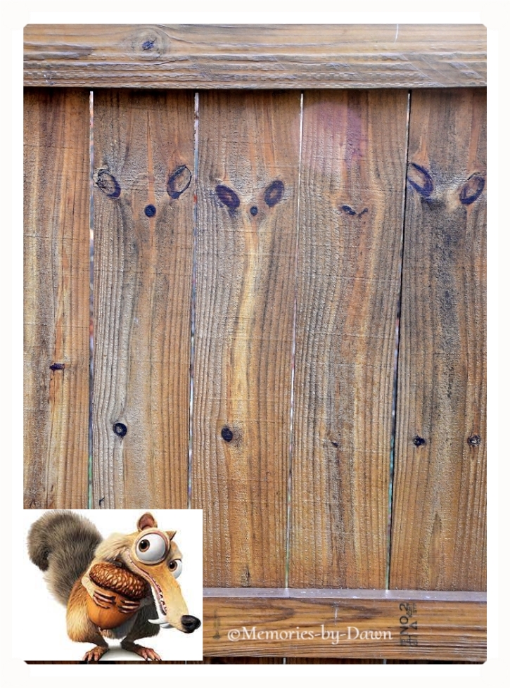 Nov 13 Eyes I don’t know why I like these “eyes” on my fence. They remind me of Scrat from Ice Age. I put a small picture of Scrat for those of you who don’t know who he is. 316/365. Share this: Click to share on Pinterest (Opens in new window) Pinterest Click to share on Facebook (Opens in new window) Facebook Like Loading... Related